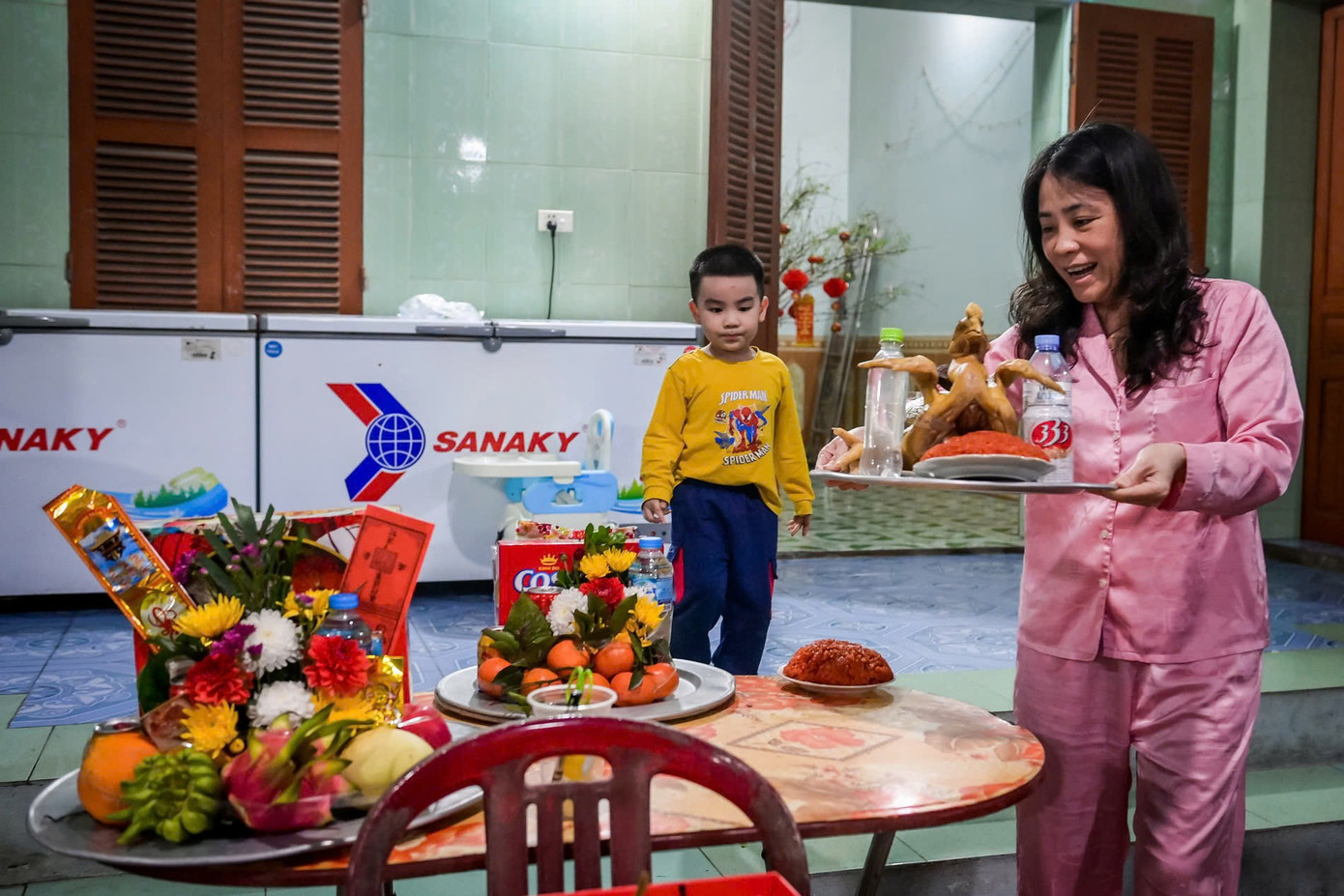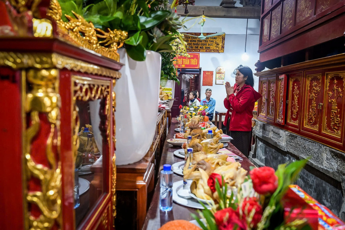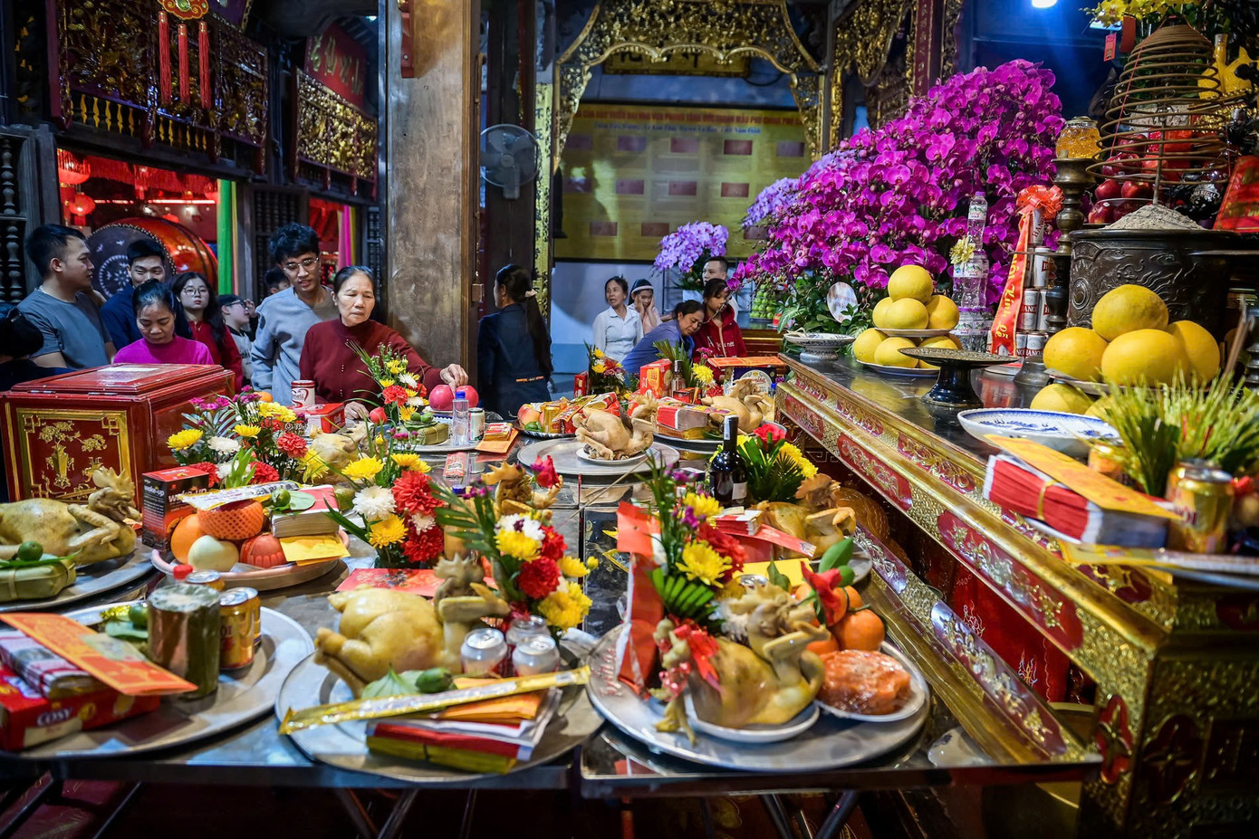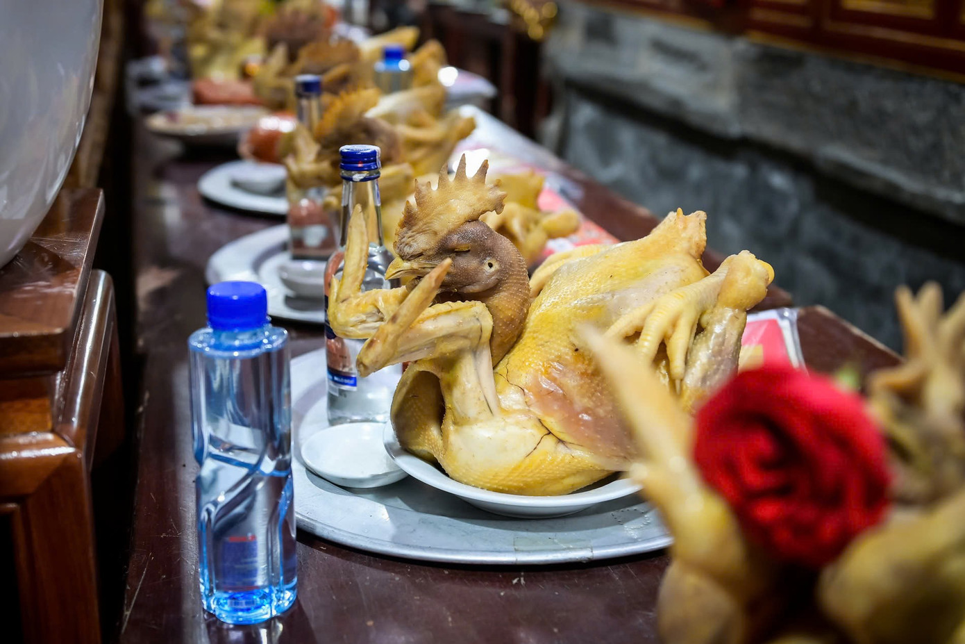 Ngay từ chiều 29 Tết Bính Ngọ, khắp các ngõ xóm đã rộn ràng tiếng nói cười xen lẫn hương thơm của nếp mới. Nhà nhà đồ xôi gấc đỏ au, luộc những con gà trống to, mào dựng, bày biện hương hoa, bánh kẹo tươm tất trên mâm lễ. Theo Nghệ nhân ưu tú Trần Thị Kim Huệ, thủ nhang Phủ Chính Tiên Hương, mỗi lễ vật đều mang ý nghĩa riêng: xôi gấc tượng trưng cho may mắn, gà trống thể hiện sự đủ đầy, sung túc; tất cả thể hiện lòng thành và ước vọng về một năm mới hanh thông, thịnh vượng.