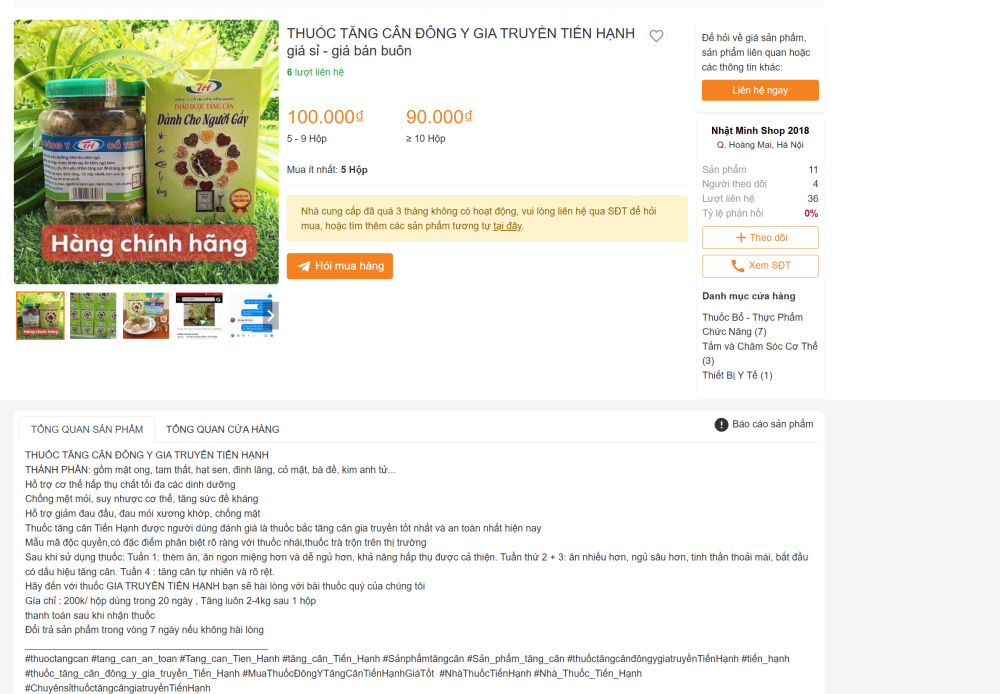 Trong quá trình nắm tình hình địa bàn, trinh sát Phòng Cảnh sát kinh tế phát hiện nhiều sản phẩm thuốc đông y được quảng cáo rầm rộ trên mạng xã hội với công dụng “ăn ngon, ngủ ngon, tăng cân nhanh”.